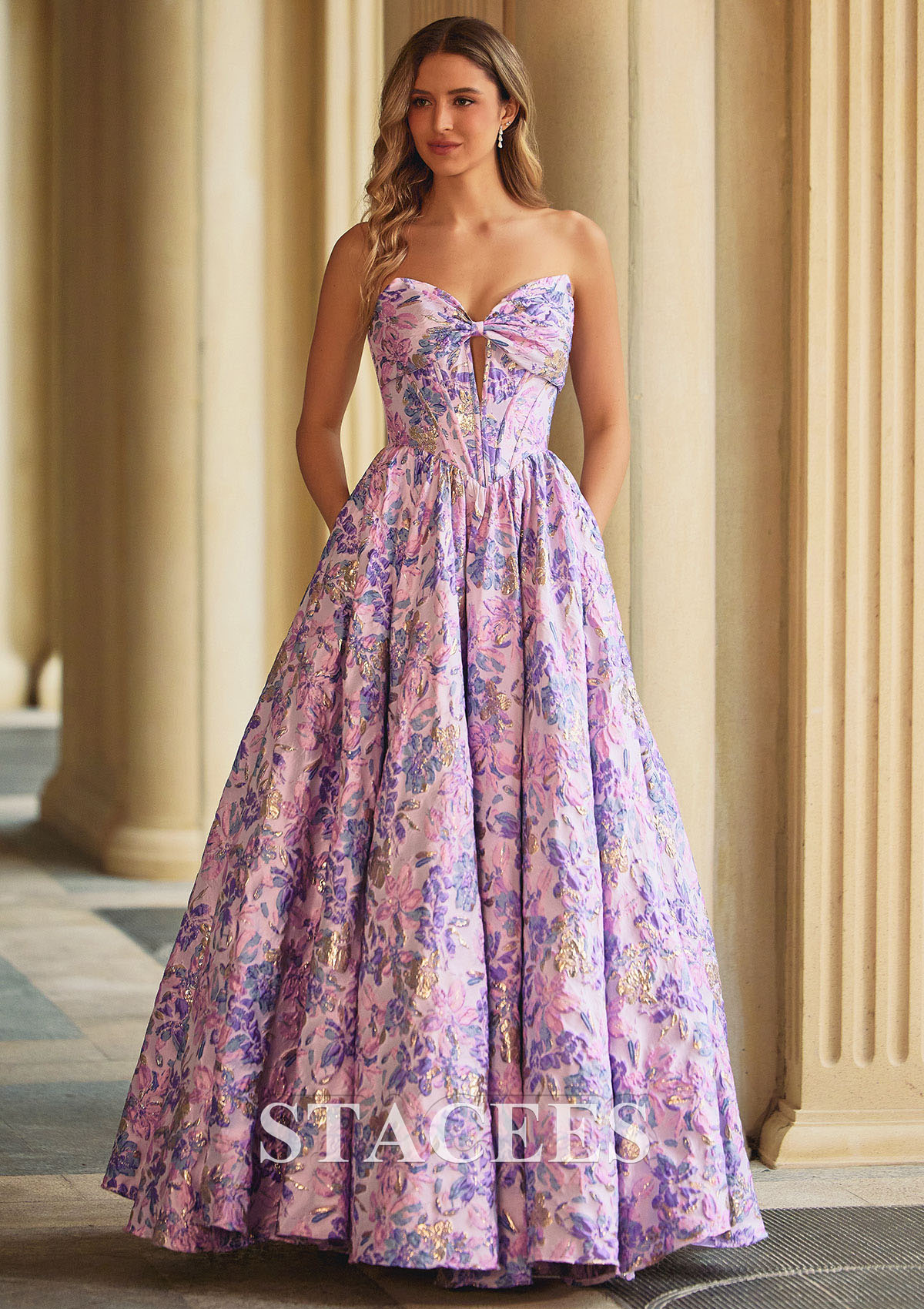 Embellishment: Floral Print,Bows,Pockets,Pleated,Keyhole