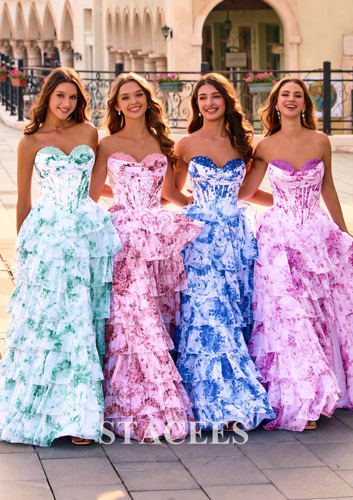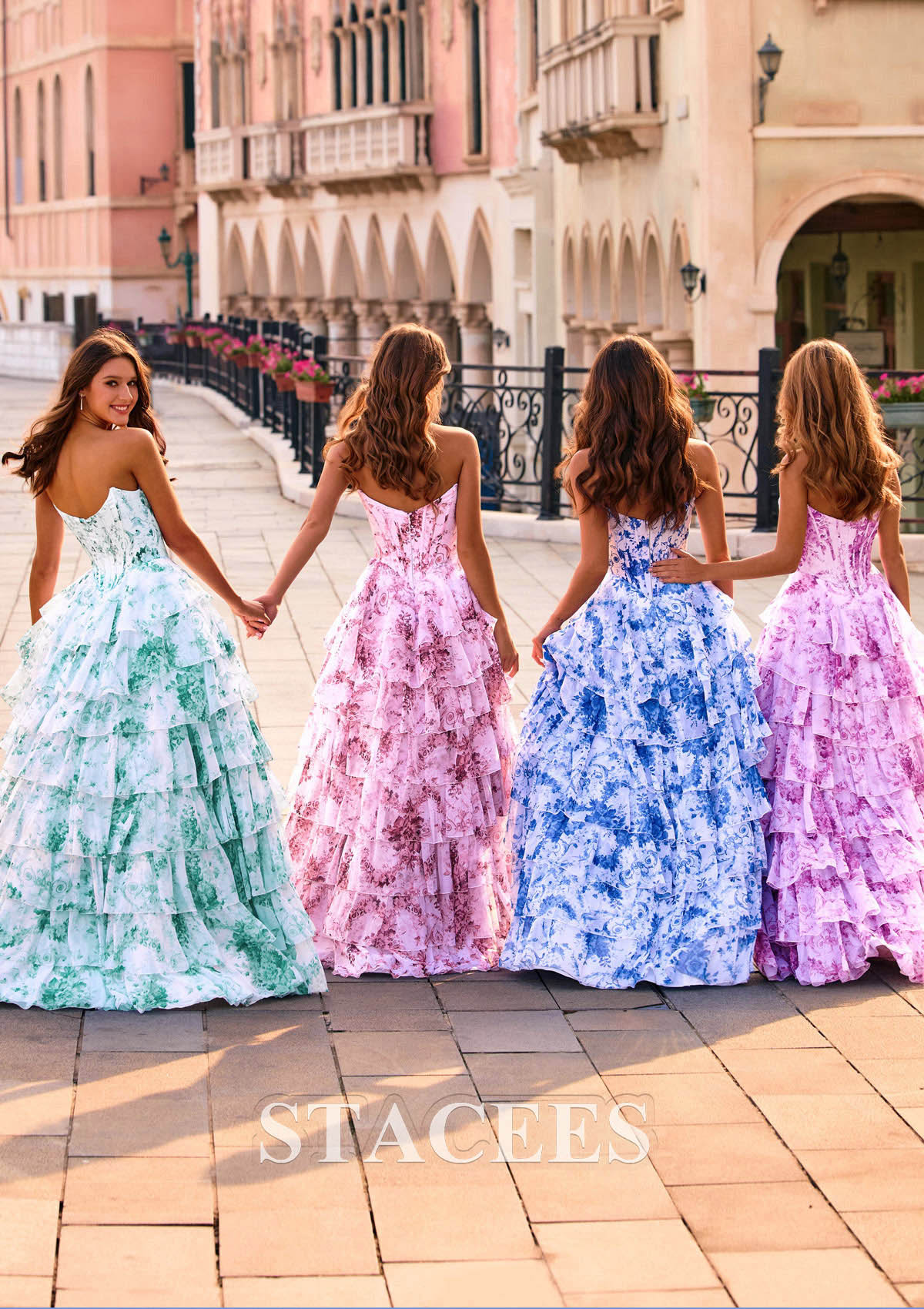A-line Chiffon Prom Dress Sweetheart Sweep Train with Appliqued Pleated Ruffles Split S8832P - Prom Dresses - Stacees.co.uk