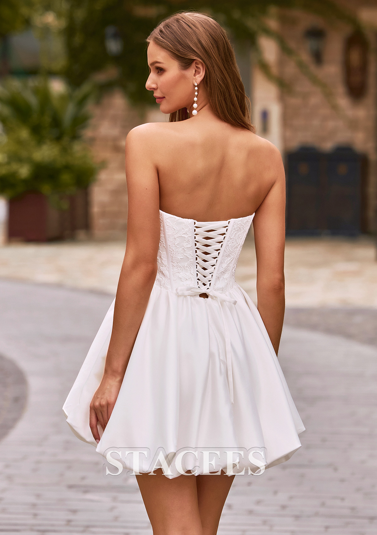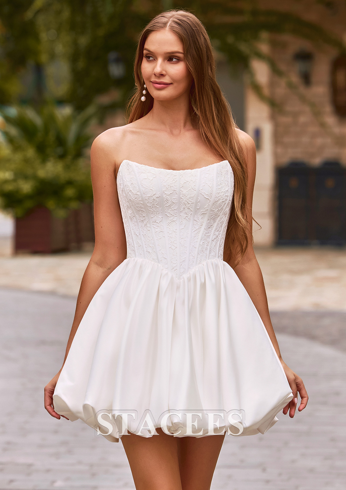 A-line Satin Wedding Dress Bateau Short/Mini with Lace S3153W - Wedding Dresses - Stacees.co.uk