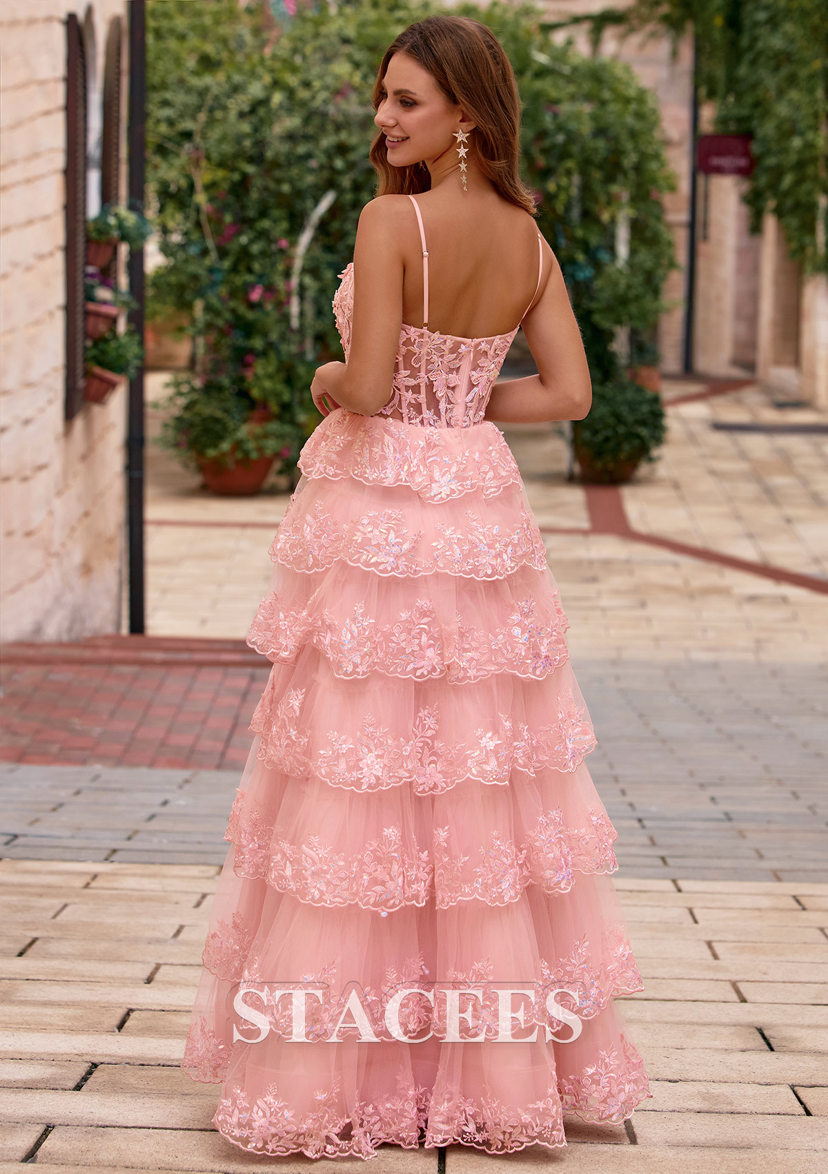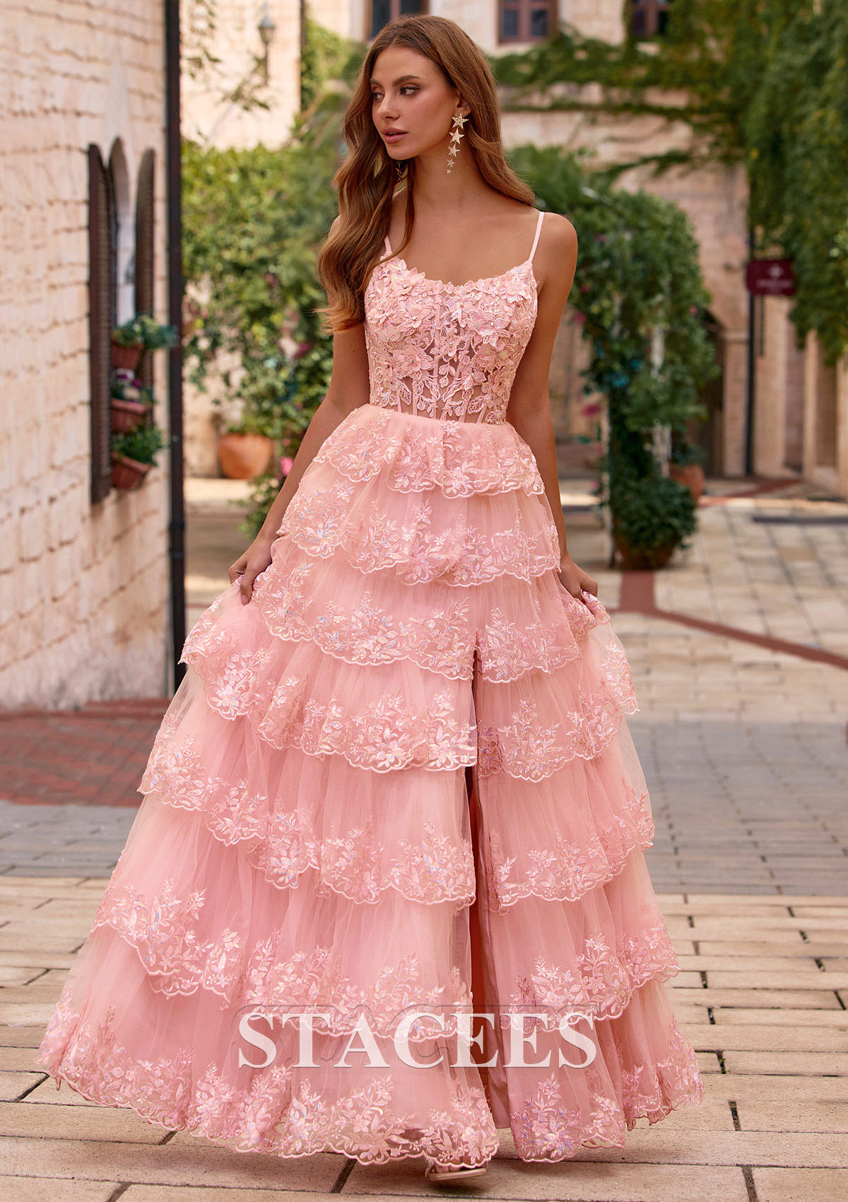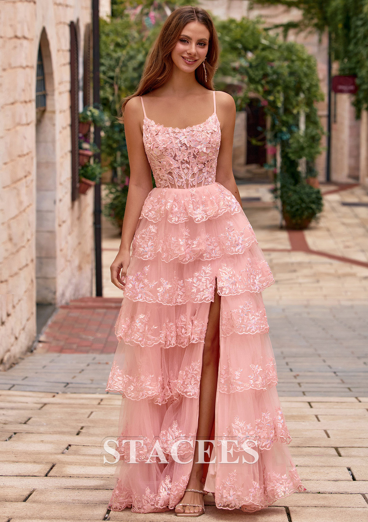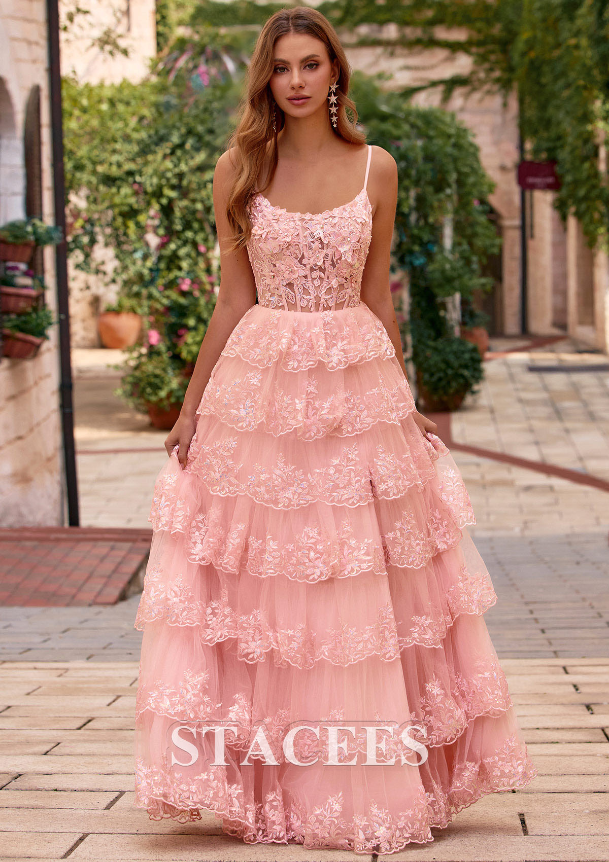 A-line Sequined Prom Dress Scoop Neck Floor-Length with Flowers Ruffles S9003P - Prom Dresses - Stacees.uk