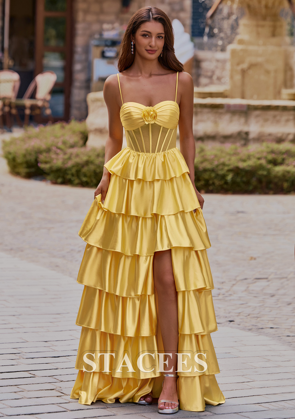 Embellishment: Flowers,Pleated,Ruffles,Split