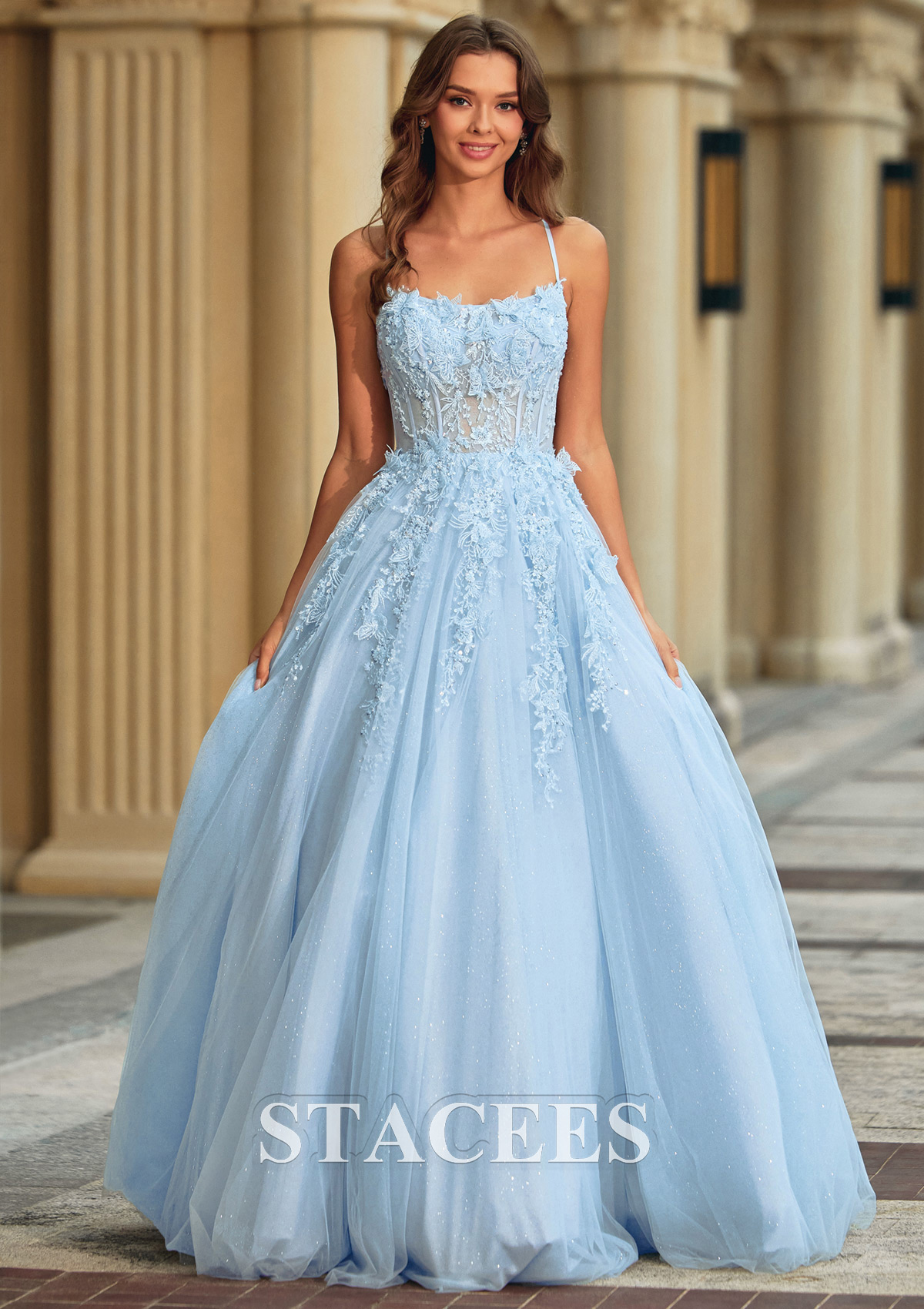 A-line Tulle Prom Dress Scoop Neck Sweep Train with Sequins Glitter Butterfly S9125P - Prom Dresses - Stacees.co.uk