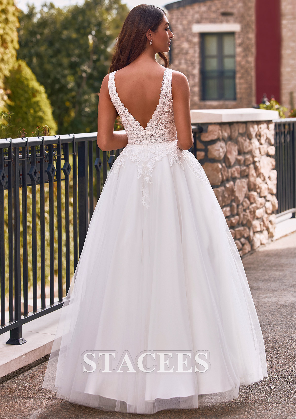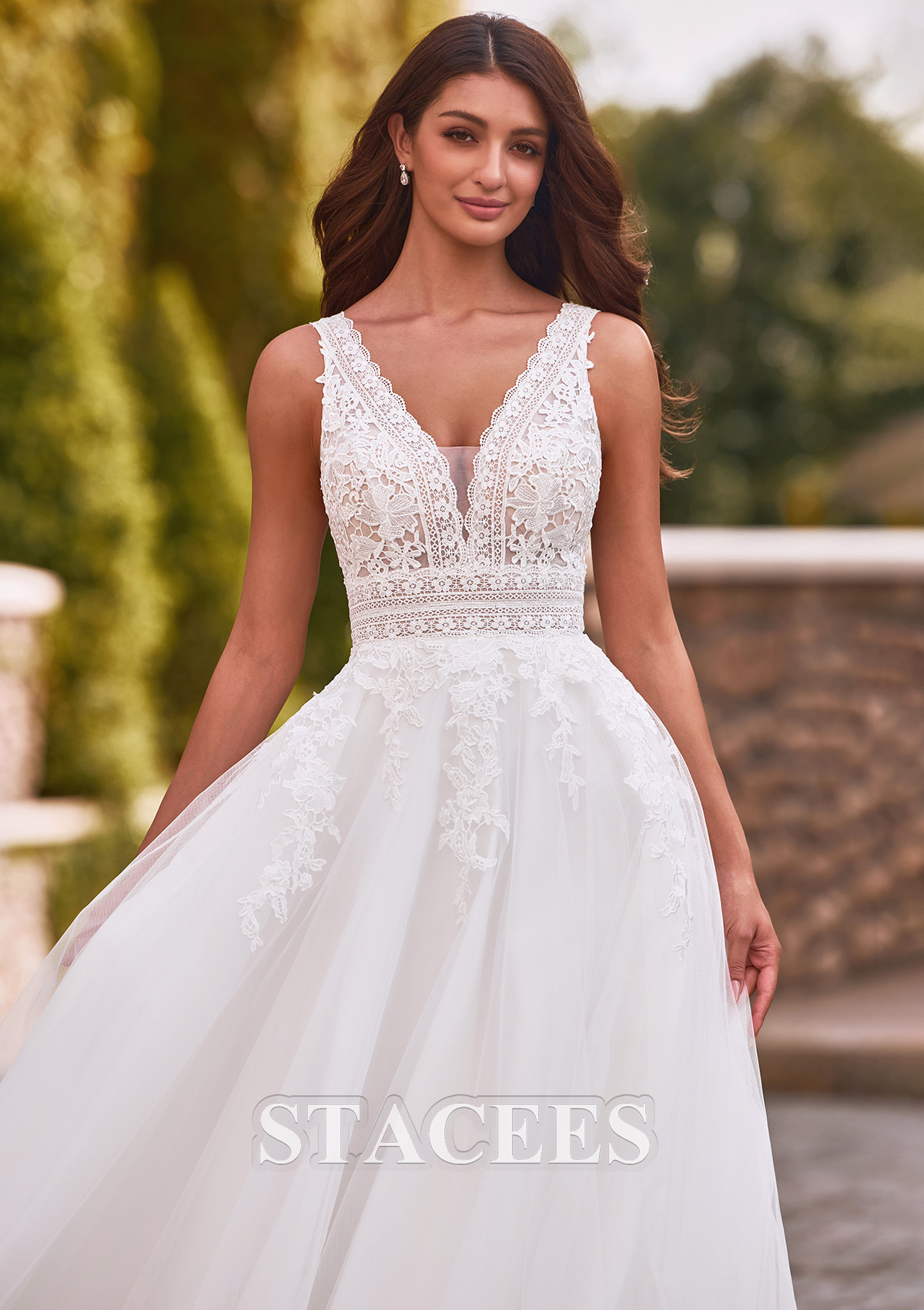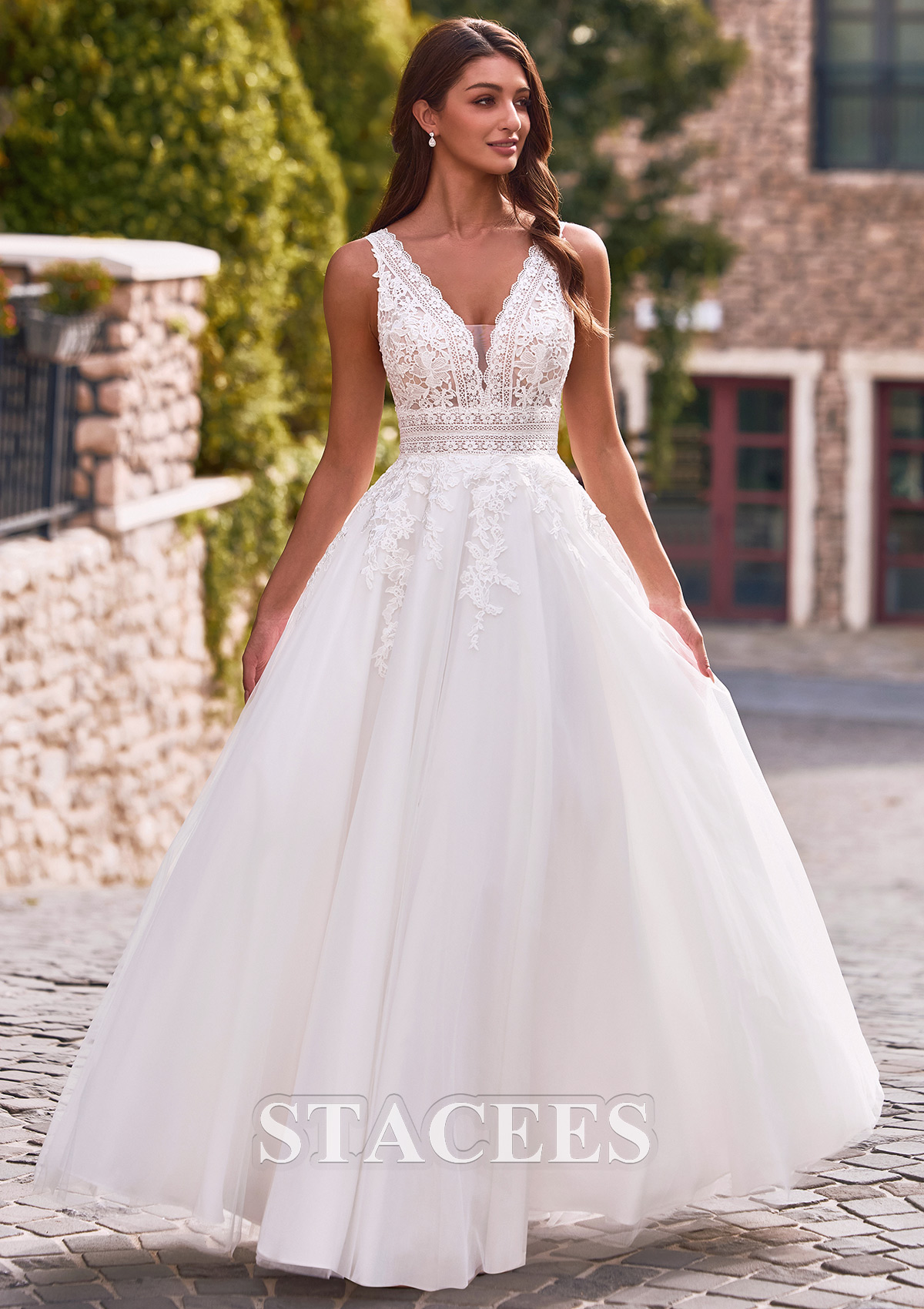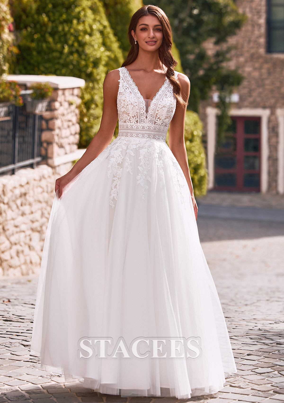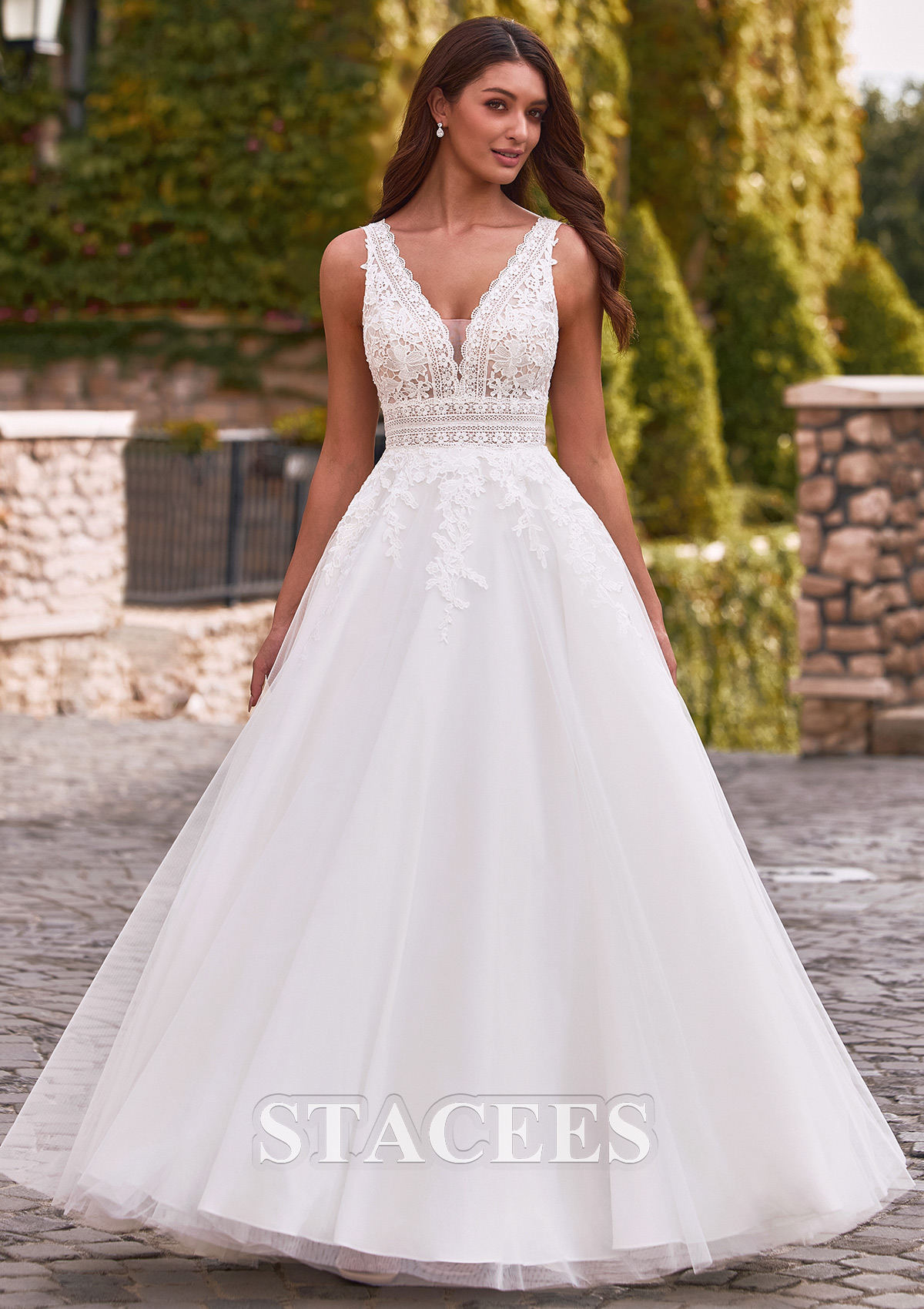 A-line Tulle Wedding Dress V Neck Floor-Length with Lace S3189W - Wedding Dresses - Stacees.co.uk