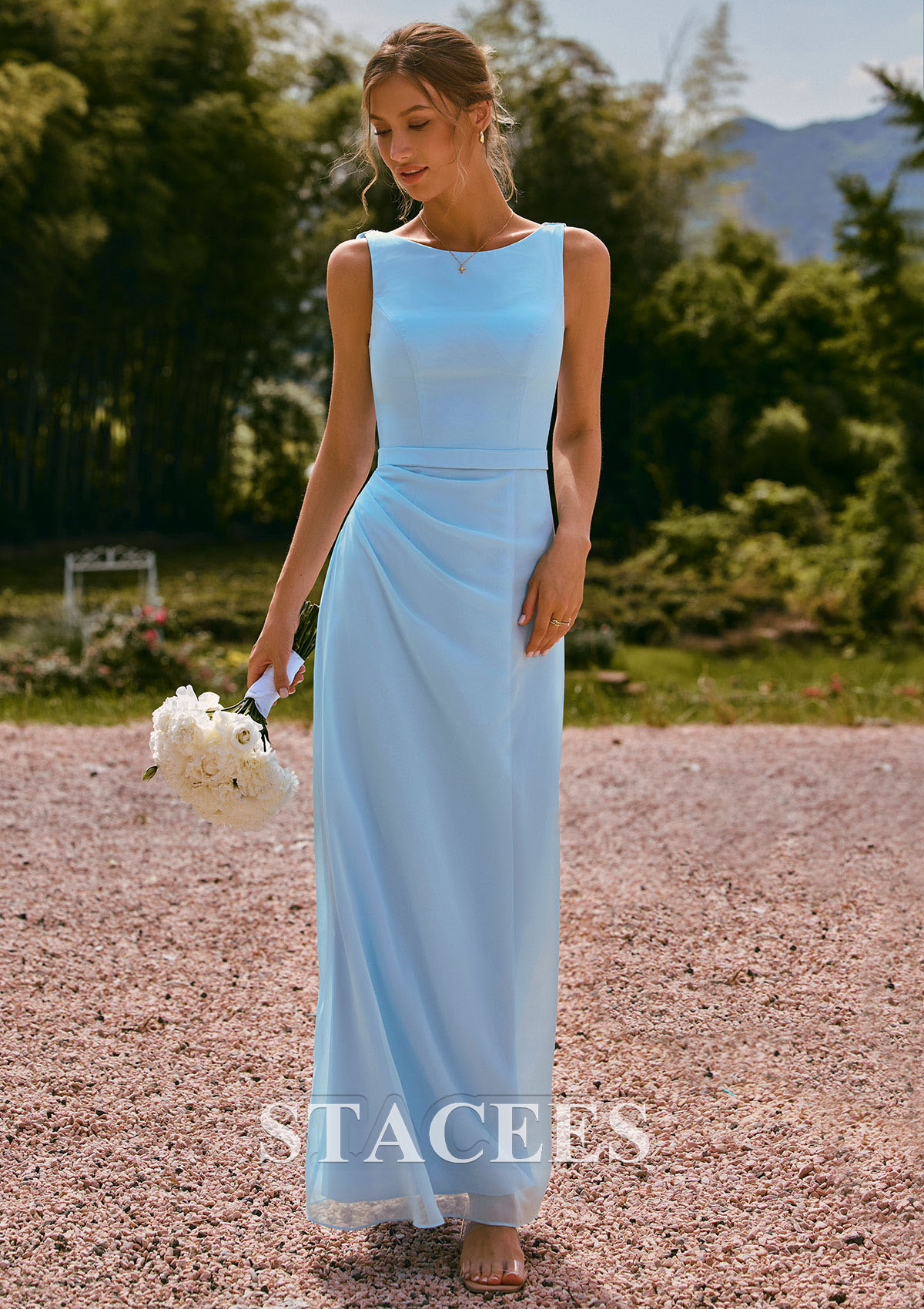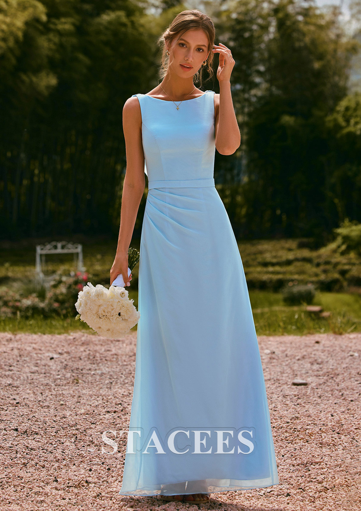 Sheath/Column Chiffon Bridesmaid Dress Bateau Floor-Length with Pleated Sashes - Bridesmaid Dresses - Stacees.co.uk