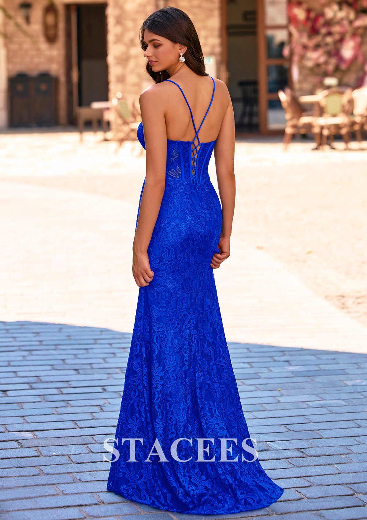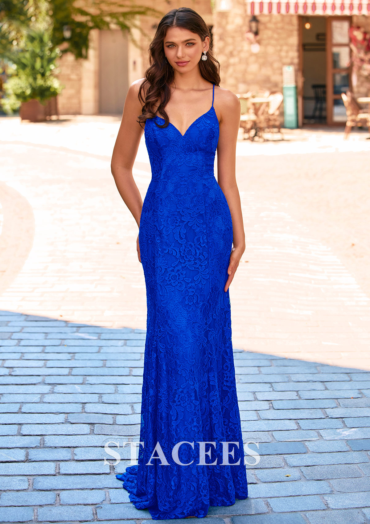 Sheath/Column Lace Prom Dress V Neck Sweep Train S8922P - Prom Dresses - Stacees.co.uk