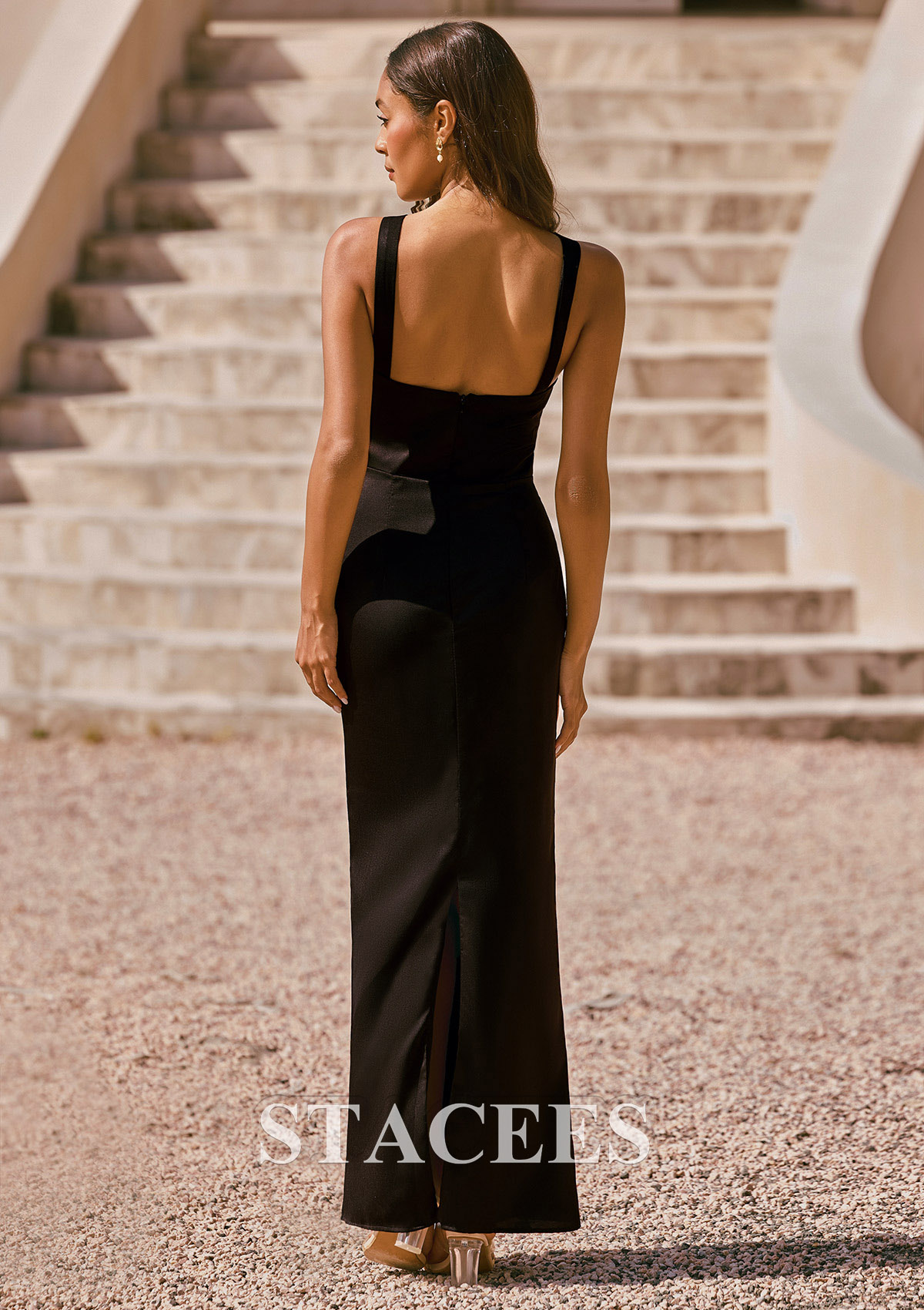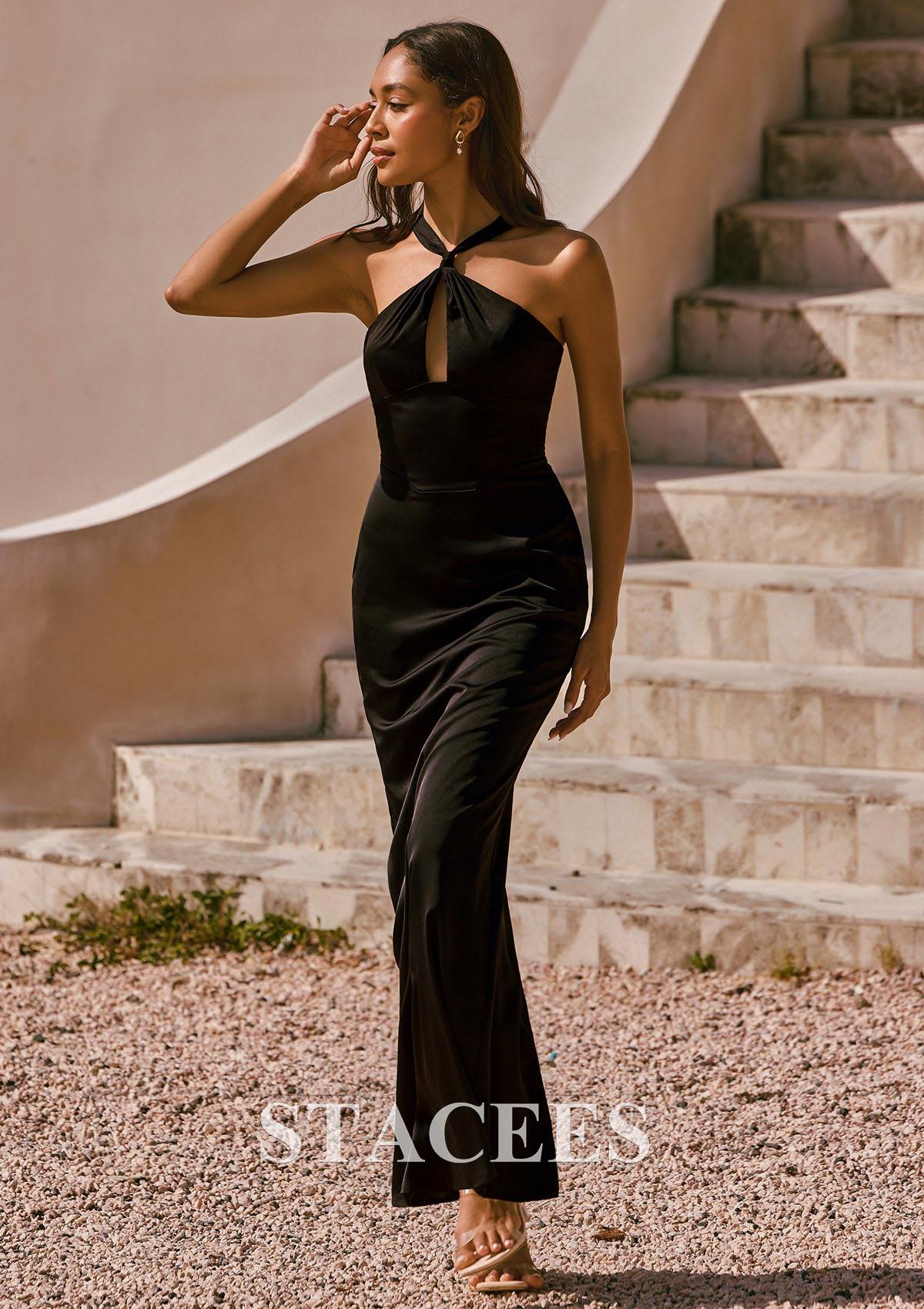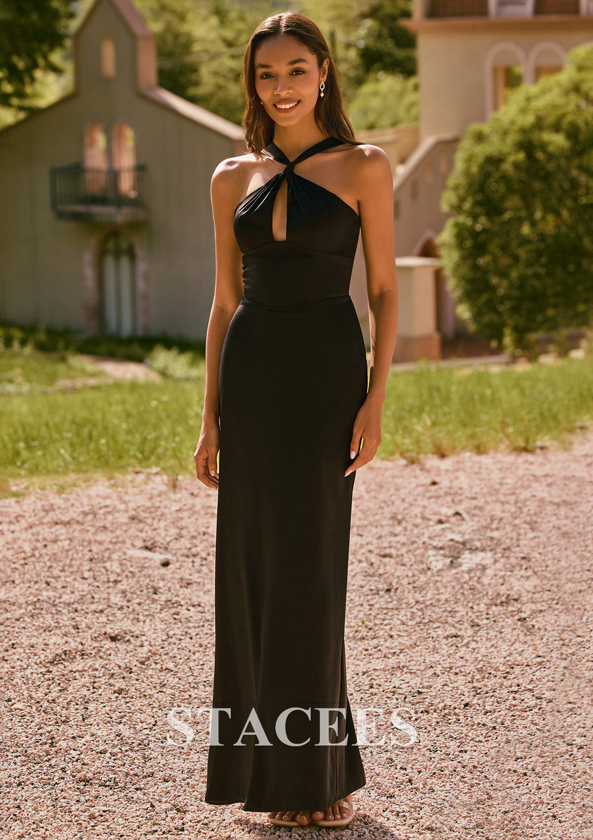 Sheath/Column Stretch Satin Bridesmaid Dress Halter Floor-Length with Pleated Split S6051B - Bridesmaid Dresses - Stacees.co.uk