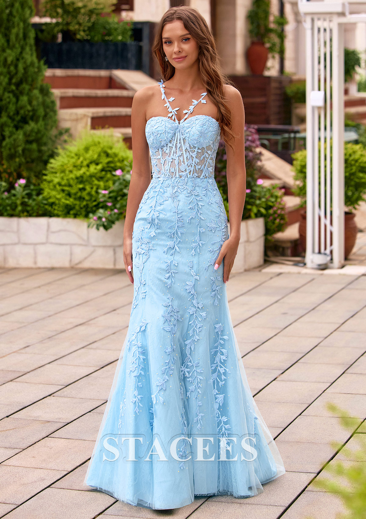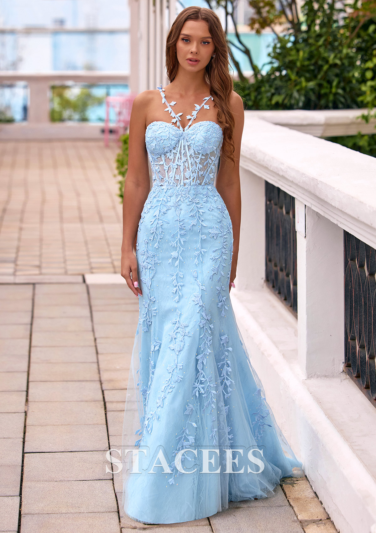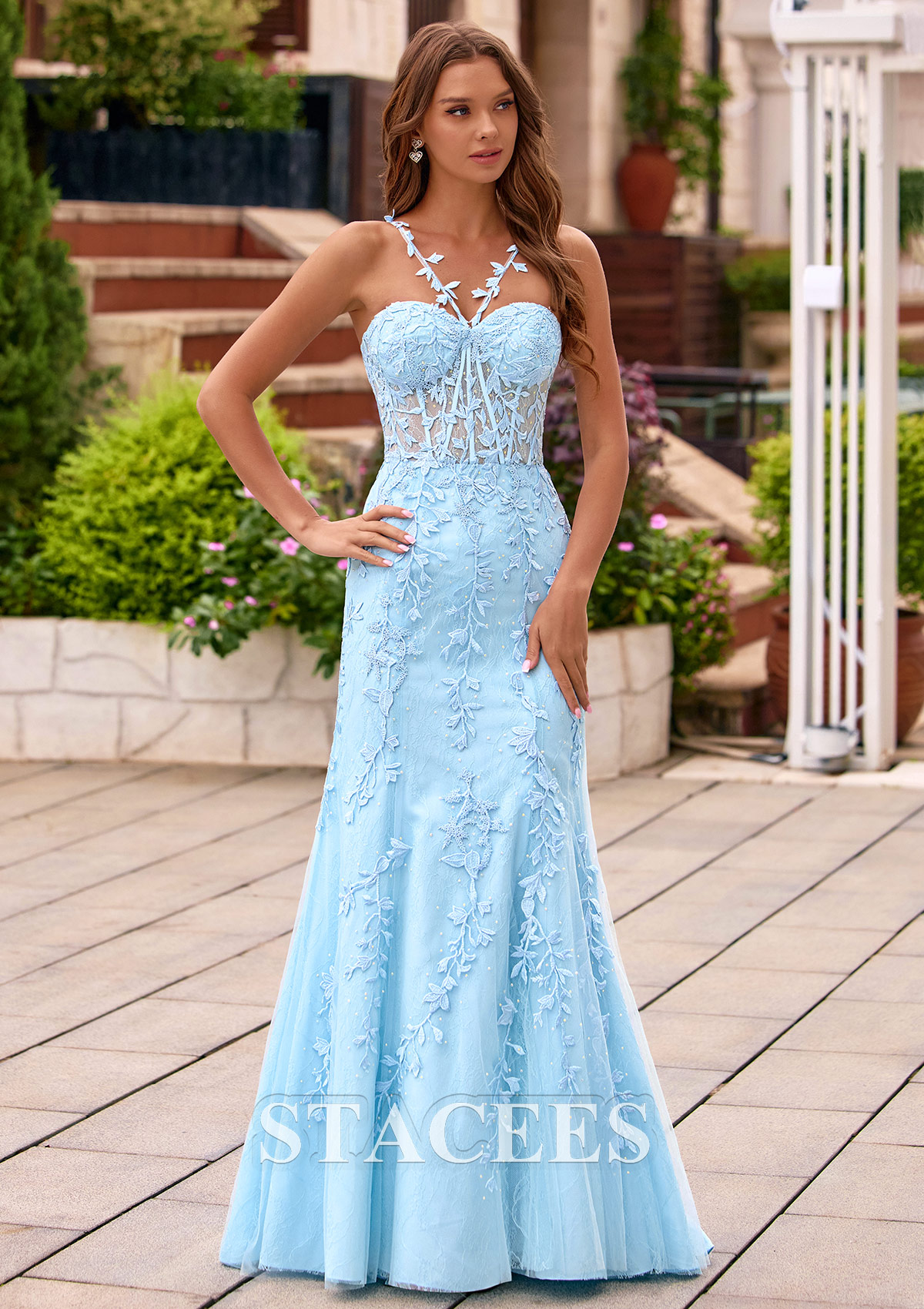 Sheath/Column Tulle Prom Dress Halter Sweep Train with Appliqued Beading S8946P - Prom Dresses - Stacees.uk