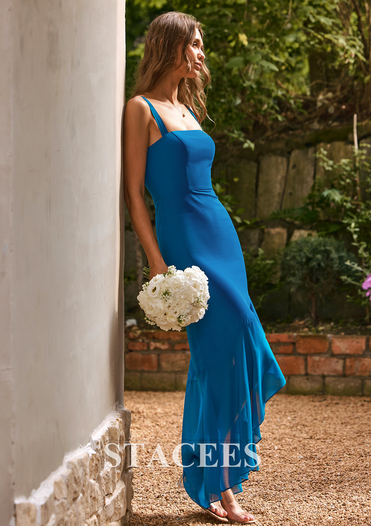 This Sheath/Column v-neck stretch satin bridesmaid dress features an elegant silhouette and soft sheen. The v-neck design elongates the skirt, and the adjustable spaghetti straps easily fit any figure. Ruffle sleeves sway gently in the breeze, adding a touch of elegance and romance. Delicate pleating and a high slit ensure freedom of movement. The clever cowl back adds a touch of fashion to any photoshoot. The lightweight fabric drapes beautifully and resists wrinkling, ensuring all-day comfort. Capture your beautiful moments with this dress.