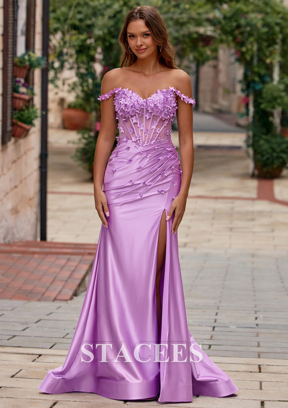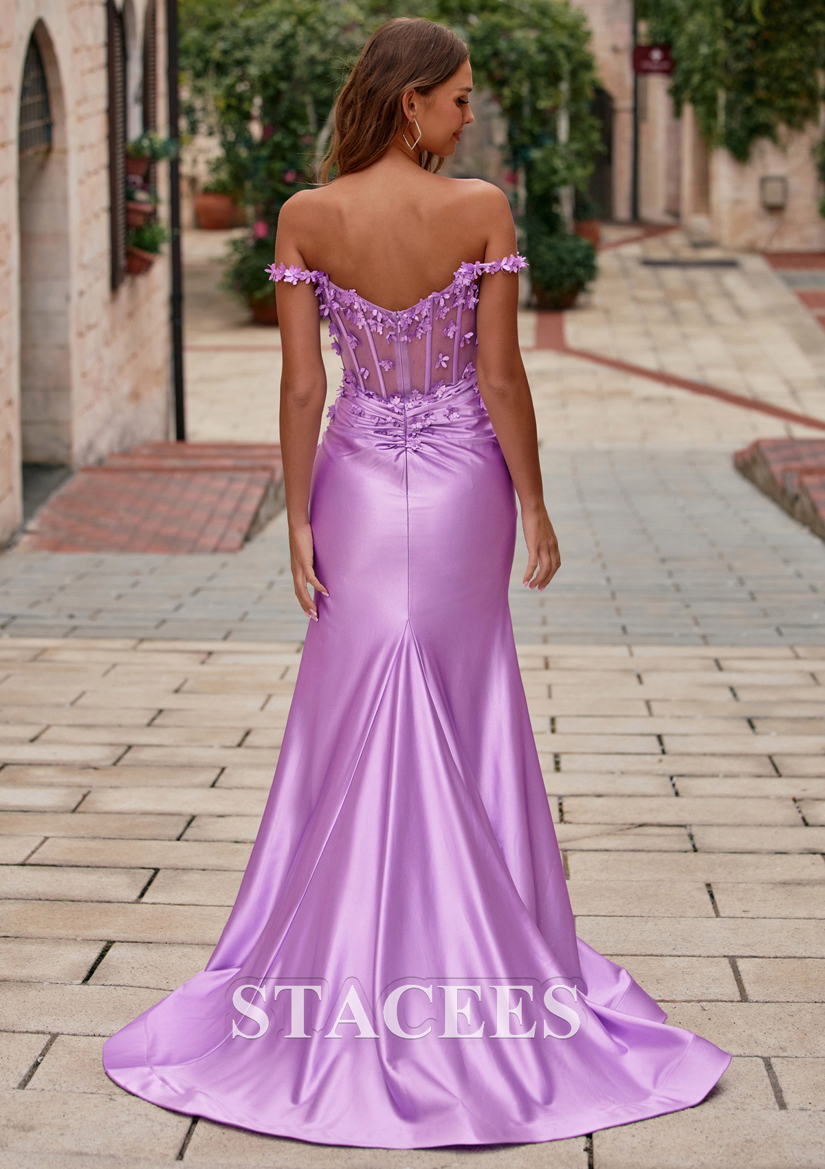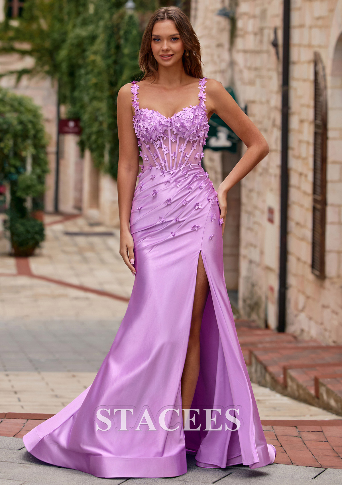 Trumpet/Mermaid Silk like Satin Prom Dress Sweetheart Sweep Train with Beading Flowers Pleated Split S9006P - Prom Dresses - Stacees.co.uk