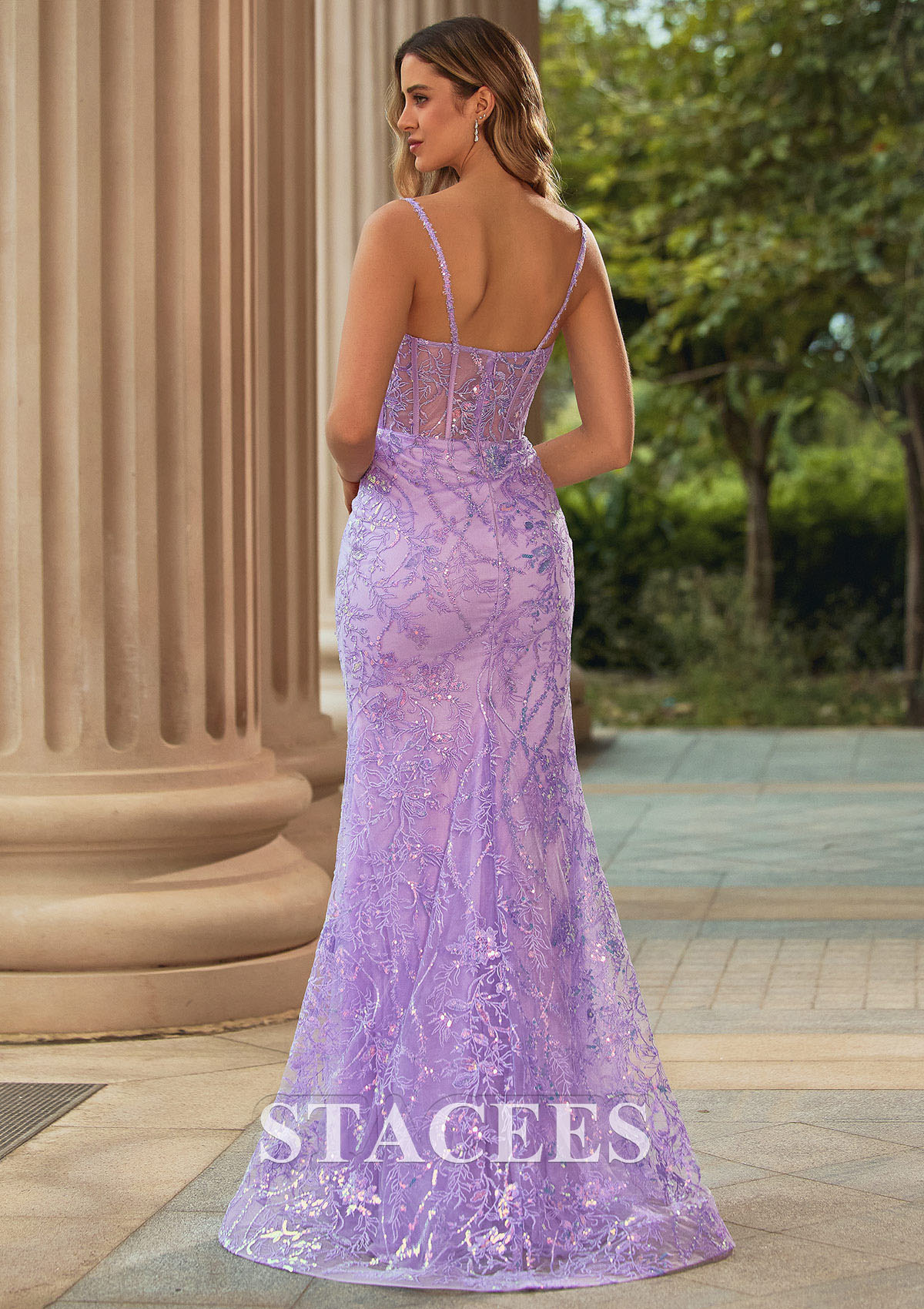 Trumpet/Mermaid Tulle Prom Dress V Neck Sweep Train with Embroidery Sequins S9067P - Prom Dresses - Stacees.co.uk