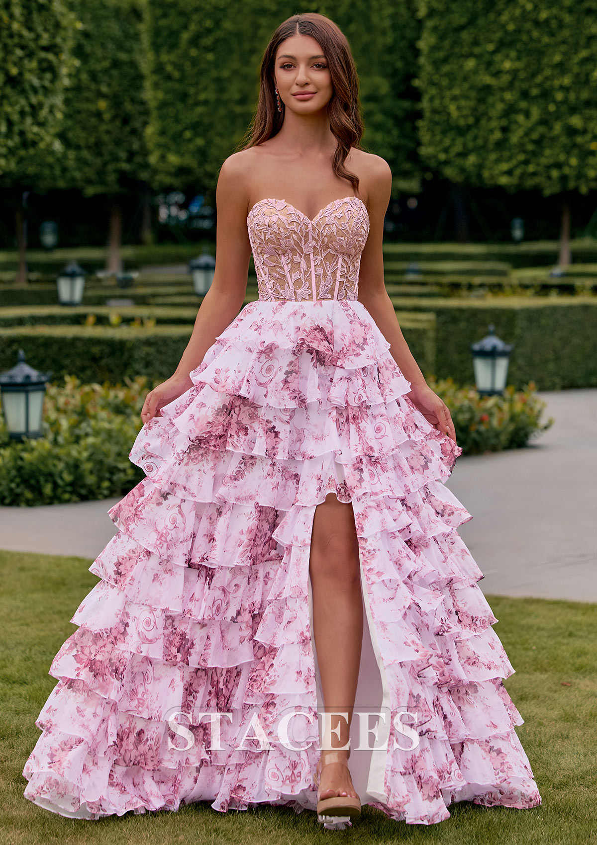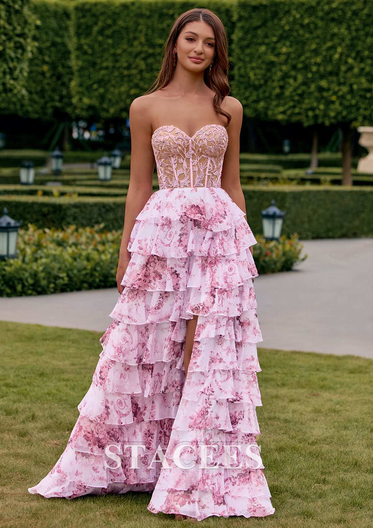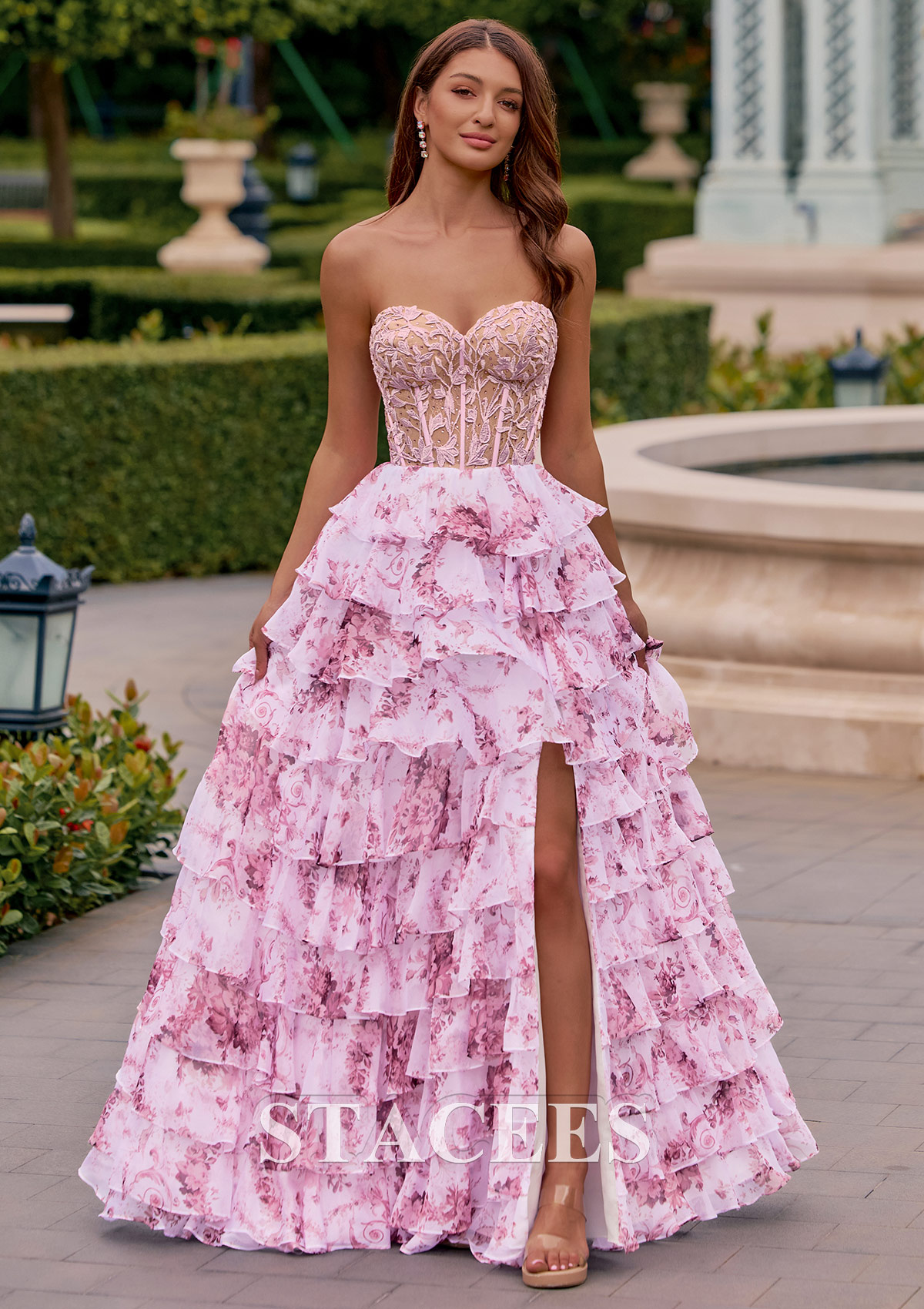 Embellishment: Floral Print,Split,Ruffles,Beading,Appliqued