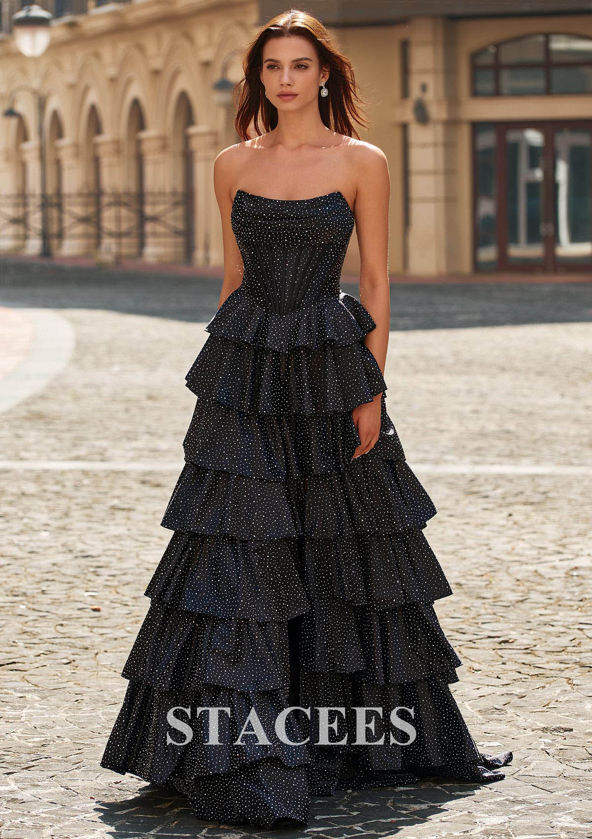 A-line Silk like Satin Prom Dress Cowl Neck Sweep Train with Hot Fix Pleated S9041P - Prom Dresses - Stacees.co.uk