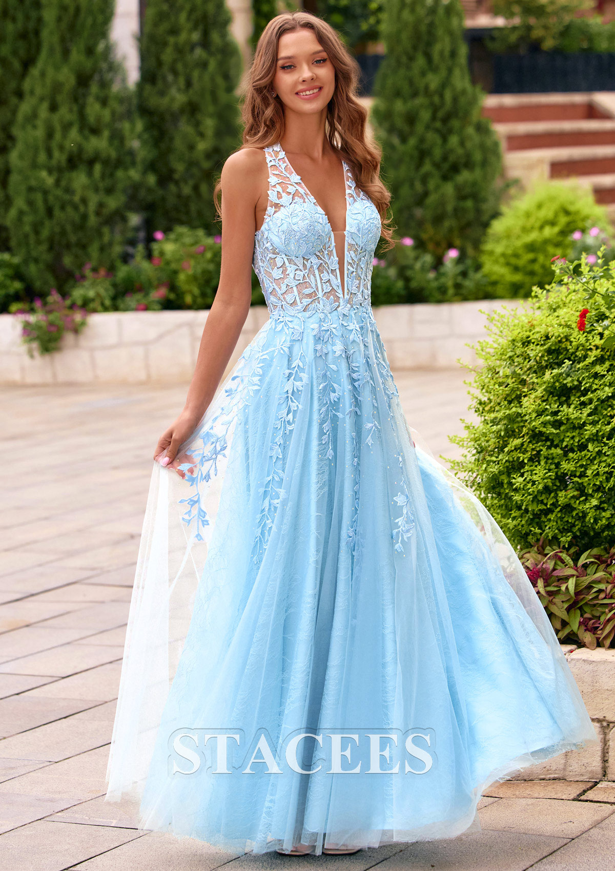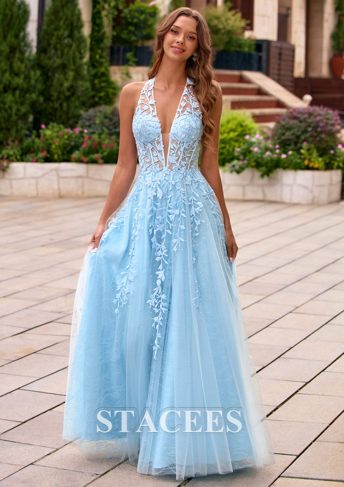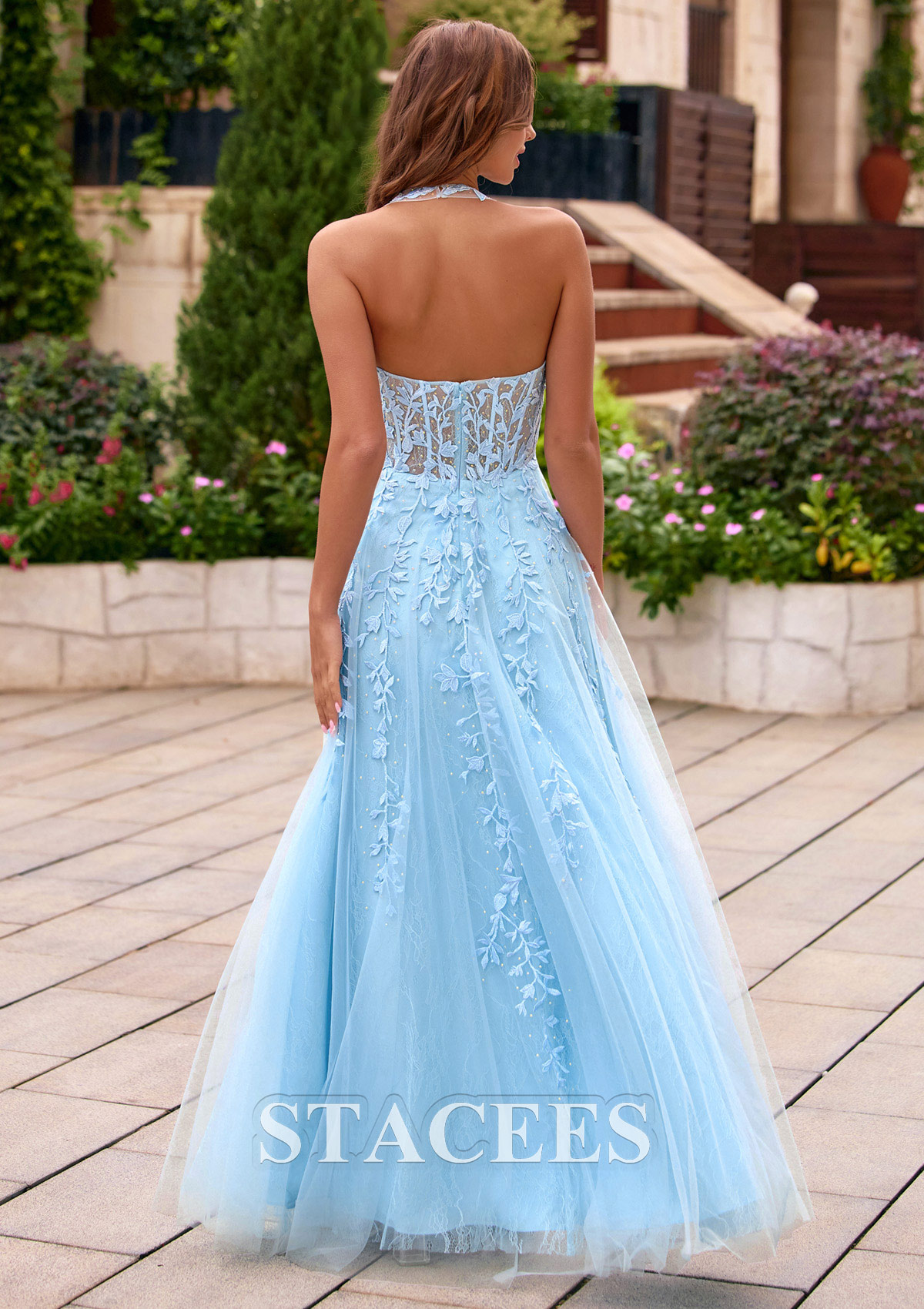 A-line Tulle Prom Dress Halter Floor-Length with Appliqued Beading S8874P - Prom Dresses - Stacees.co.uk