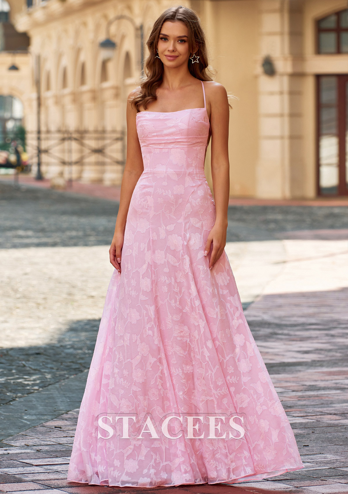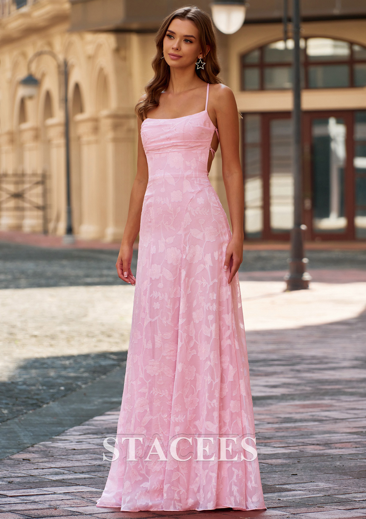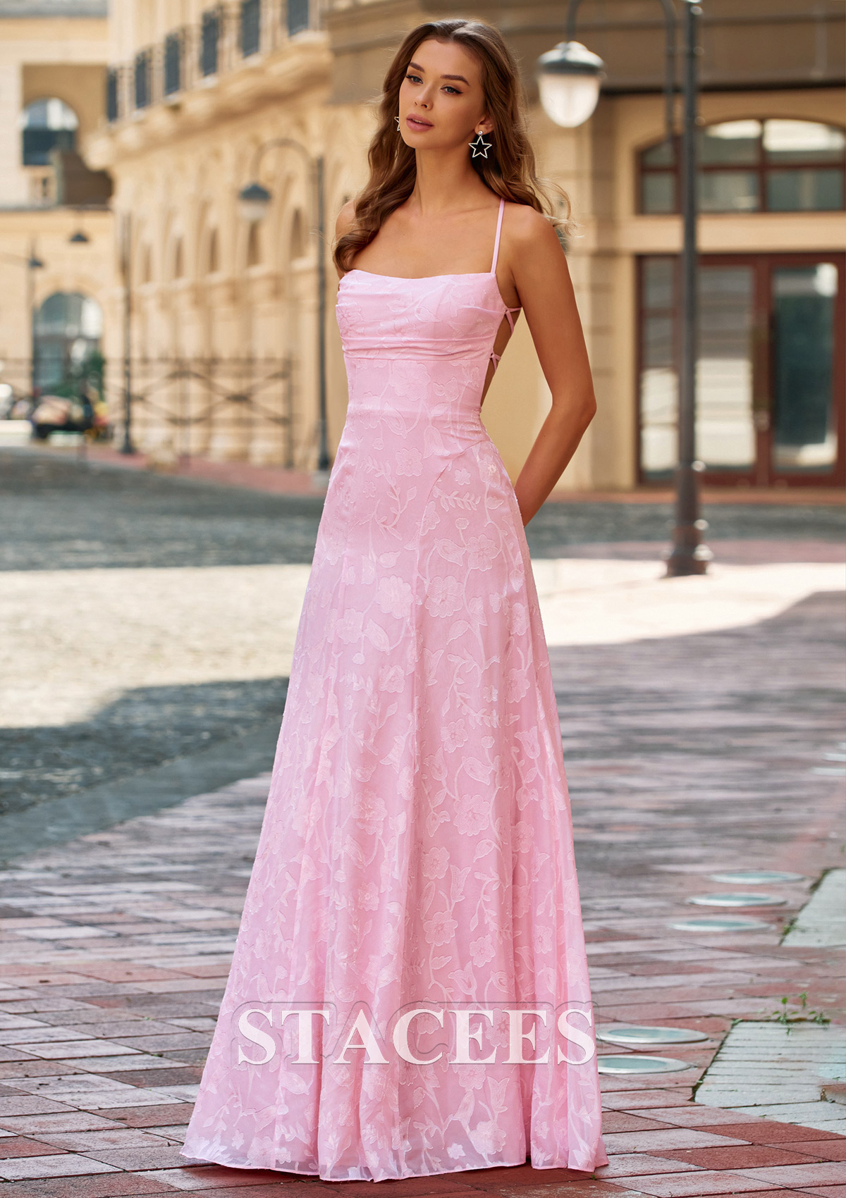 Sheath/Column Jacquard Prom Dress Square Neckline Sweep Train with Pleated S9076P - Prom Dresses - Stacees.co.uk