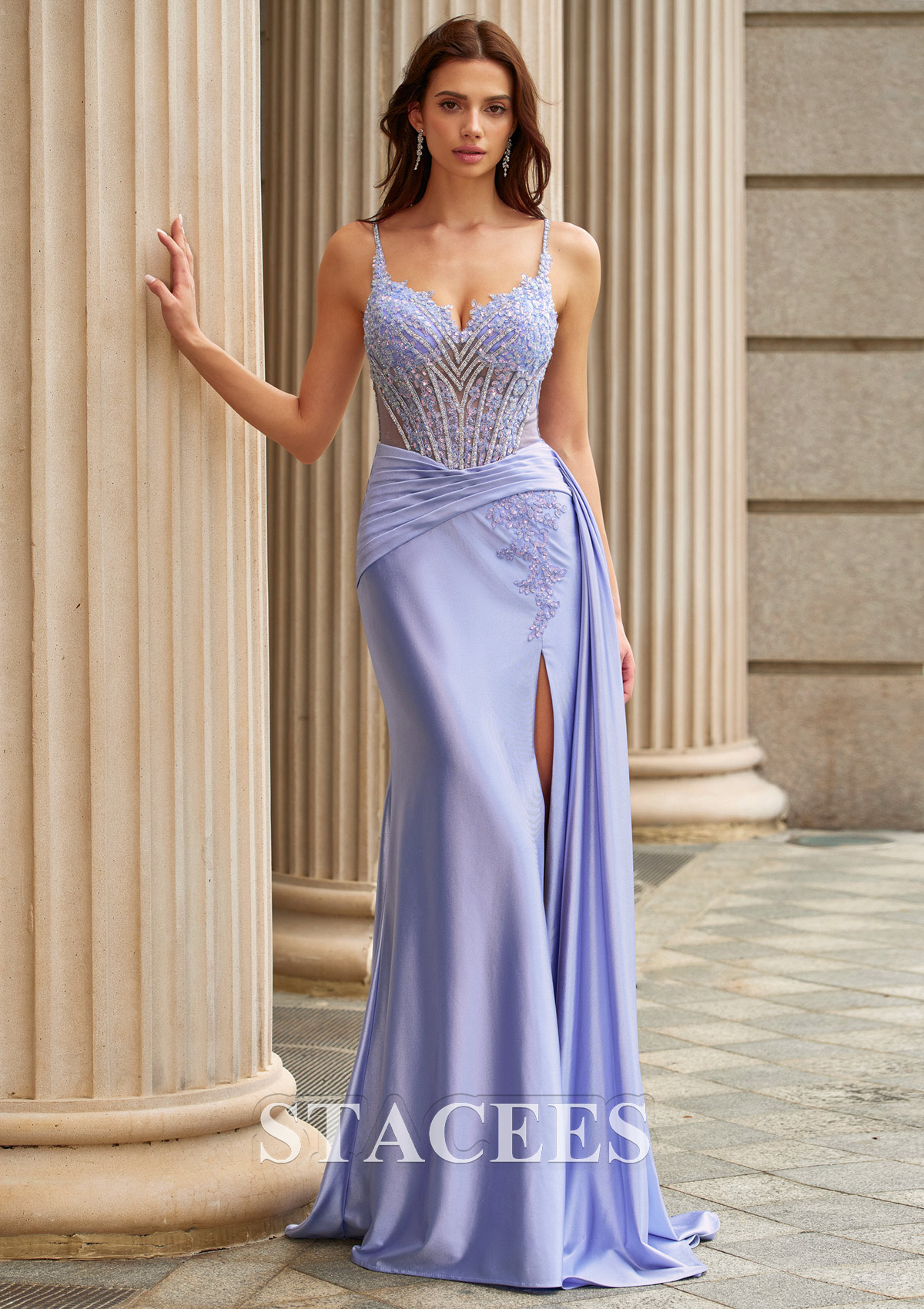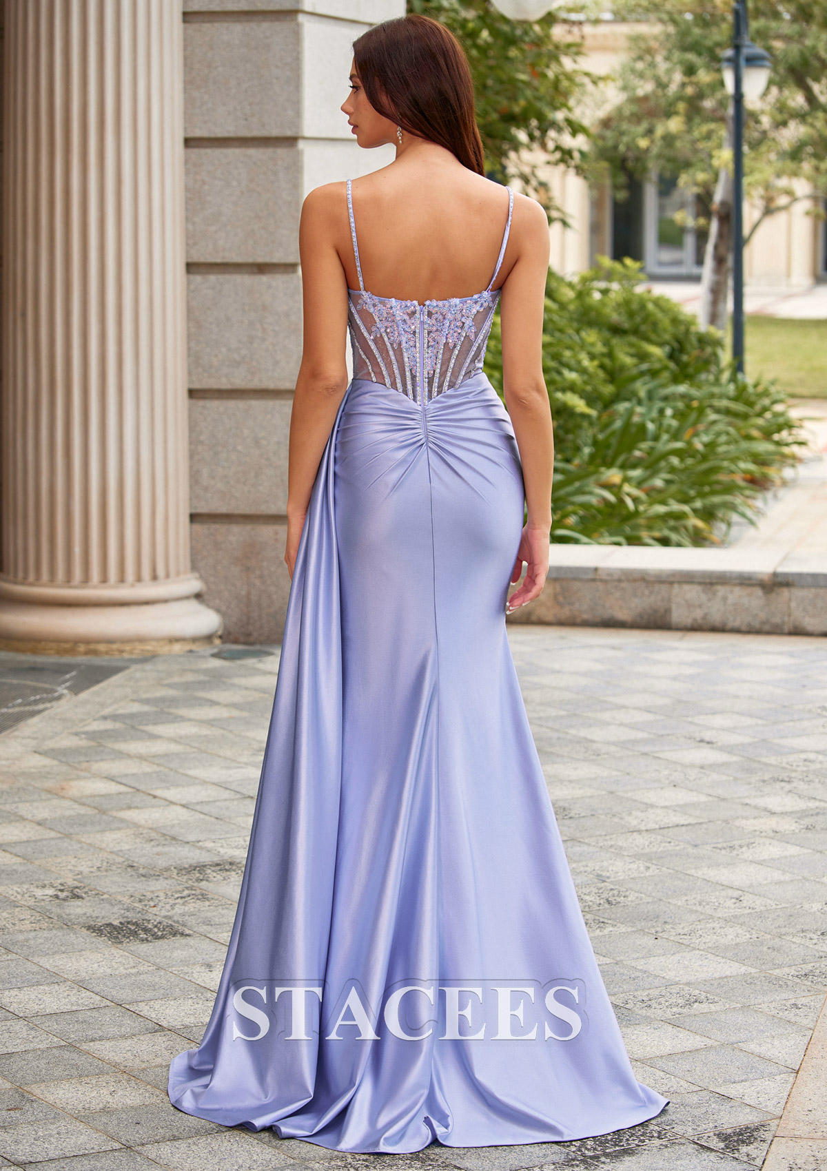 Sheath/Column Silk like Satin Prom Dress V Neck Sweep Train with Beading Side Draping S9097P - Prom Dresses - Stacees.co.uk