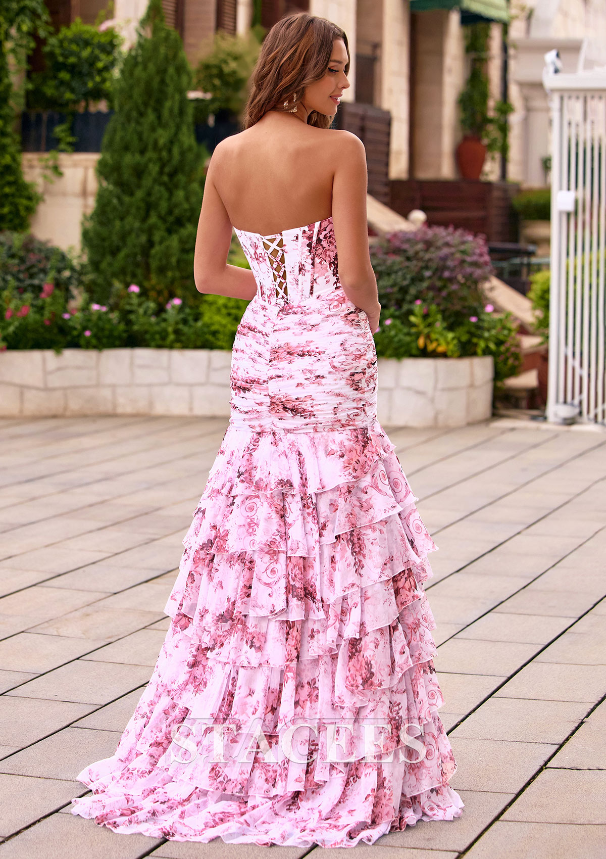 Trumpet/Mermaid Chiffon Prom Dress Sweetheart Sweep Train with Appliqued Pleated Ruffles Split Floral Print S8839PS - Prom Dresses - Stacees.co.uk